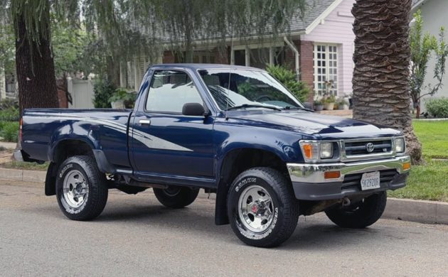 Ontario, California is between San Bernardino and Anaheim, about 40 minutes (give or take) east of Los Angeles. It’s a fairly dry climate, with around 16 inches of precipitation a year on average, about half of what we get in the upper Midwest. The sun can wreak havoc on human skin (melanoma numbers are up) as well as on vehicles. This sunburned 1993 Toyota 4×4 Pickup is listed here on eBay in Ontario, CA, where the current bid is $6,500, and there is no reserve.