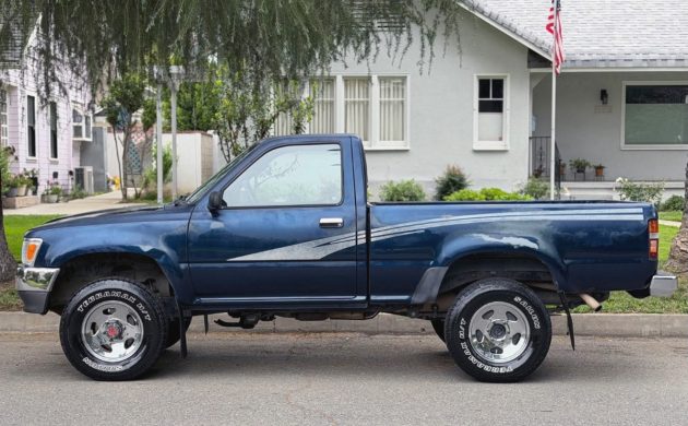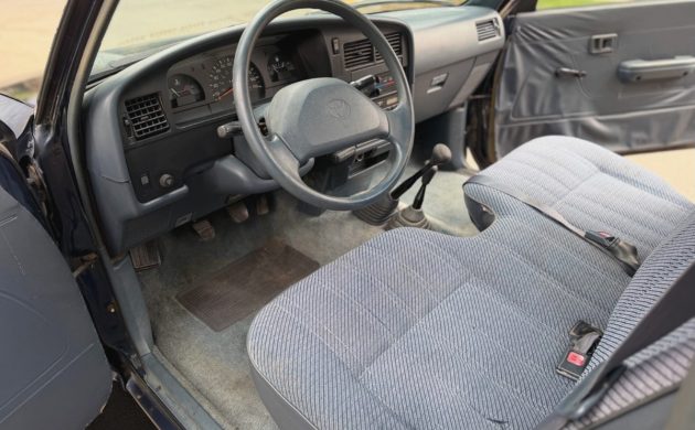 Even just a couple of hours of detailing would have done wonders for this dusty, rusty engine compartment. The rust would be a tougher fix, but just a general light cleaning would have been nice. It always makes a vehicle seem like it’s been well-maintained, even if it’s just for show. This engine is Toyota’s 3VZ-E, a 3.0-liter SOHC V6 with 150 horsepower and 180 lb-ft of torque when new. It sent power through a 2-speed transfer case (normally an RF1A) and 5-speed manual to all four wheels when needed, and this one has manually-locking front hubs as well. This truck is said to run great, and everything works down to the cold AC. How much would you pay for this one-owner Toyota 4×4 pickup?