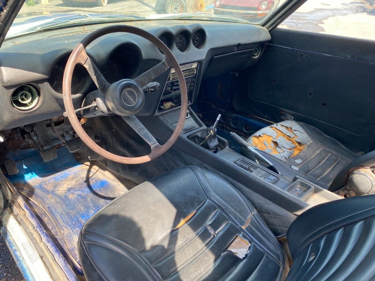 Although Datsun initially denied it, placing the 240Z side-by-side with an early Jaguar E-Type revealed where the company drew its inspiration for the design of its new sports model. Both are two-seat vehicles with a rear hatch and a long hood. The 240Z underwent evolutionary changes during its production life, but enthusiasts consider early examples the most desirable. This car fits into that mold and could be a strong restoration candidate. Its Code 115 Blue Metallic paint is tired, but the new owner will have other issues requiring attention before they pick up the spray gun. The hood has visible Bondo, but it is repairable. It would justify the effort because unless the new owner can source another early hood, fitting a later panel will be immediately apparent to Datsun purists. The remaining panels sport only minor bumps and marks, while there is no significant exterior rust to cause sleepless nights. It is visible in the rear doglegs, but the lower rear quarter panels and rear hatch frame have avoided the common problems that can beset these cars. I want to say it is a similar story when the car finds itself on a lift, but there are problems requiring attention. There is rot near one front sway bar mount, but this spot in the floor requires deeper investigation. The seller admits that a previous owner replaced this floorpan section, but the welds aren’t nicely finished. An in-person inspection will confirm if some basic work with an angle grinder will address the appearance or whether the buyer needs to unstitch it and repeat the process. A few small rust spots require repair, but the car appears structurally sound. It is missing a few minor trim pieces, but the glass looks acceptable for a survivor.