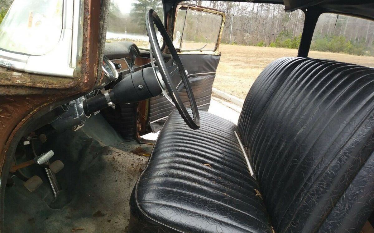 The interior looks pretty decent. The front and rear bench seats have black upholstery that appears to be in good shape. This car will make a good low-budget build and black bench seats will fit in with any theme. The seller does say that the steering wheel does not come with the car, although they will install a different wheel to make the car steerable. Not sure if that means the column and tachometer are not included as well, or just the steering wheel?