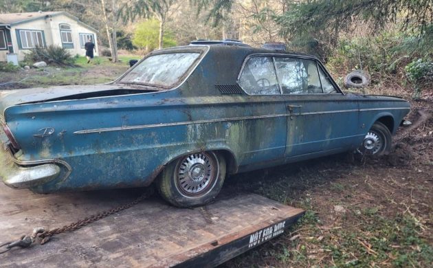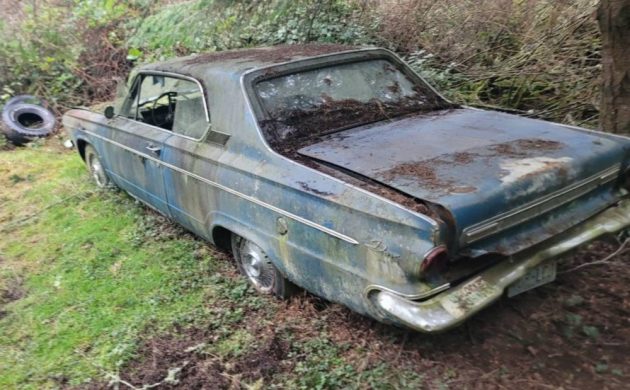 The awkwardly styled 1961-62 Dodge Lancer was a compact that went nowhere in sales. So, when Chrysler redesigned its compacts in 1963 (both Dodge and Plymouth), the Lancer name was dropped, and Dodge repositioned the Dart moniker to the new A-bodies. The GT was the stylish model and was available only as a hardtop or convertible. This ’63 GT coupe has been sitting in the woods for an undetermined amount of time, and Mother Nature has tried to reclaim it. Since it was rescued, it’s now in Freeland, Washington, and is available here on craigslist for $2,000.