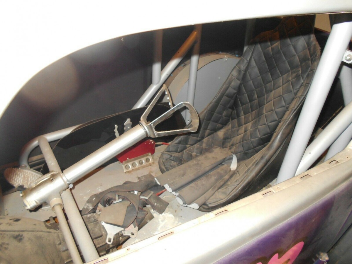 The interior is a spartan affair, with the single bucket racing seat showing some bunching up of the vinyl; otherwise, it’s just dusty (and what an impressive amount of dust for indoor storage!) There’s no immediate evidence that the “Deep Purple” Topolino has a rich and storied drag history, but just buying a classic out of someone’s dining room is a good story on its own. Do any of you have your project car stored inside your living space?