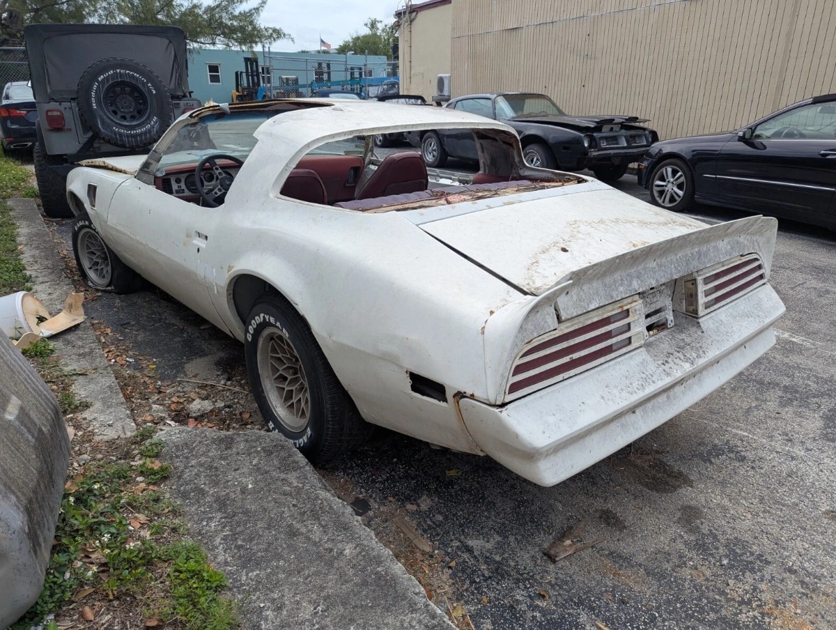 The first owner teamed the White exterior with an interior trimmed in Red vinyl. Exposure to the elements has done the interior no favors, and a retrim is required to recapture the former glory. However, apart from the missing door trims, the radio/cassette player, and the aftermarket gauges, it is complete and unmolested. I wouldn’t trust items like the electrical system or gauges, because any moisture will have undoubtedly done damage. There are negatives, but there are also some positive attributes to consider. The first owner placed some focus on comfort, equipping this Trans Am with air conditioning, power windows, a tilt wheel, and cruise control.