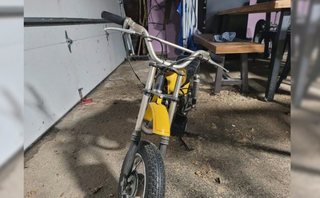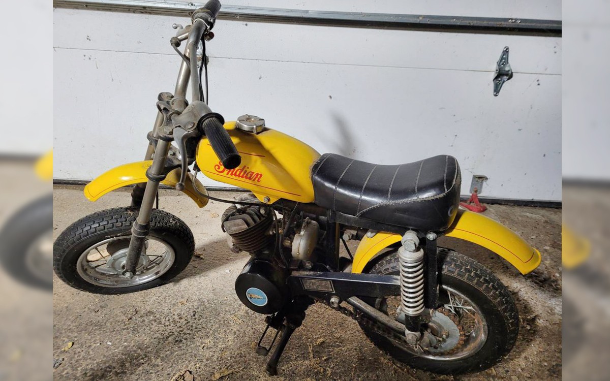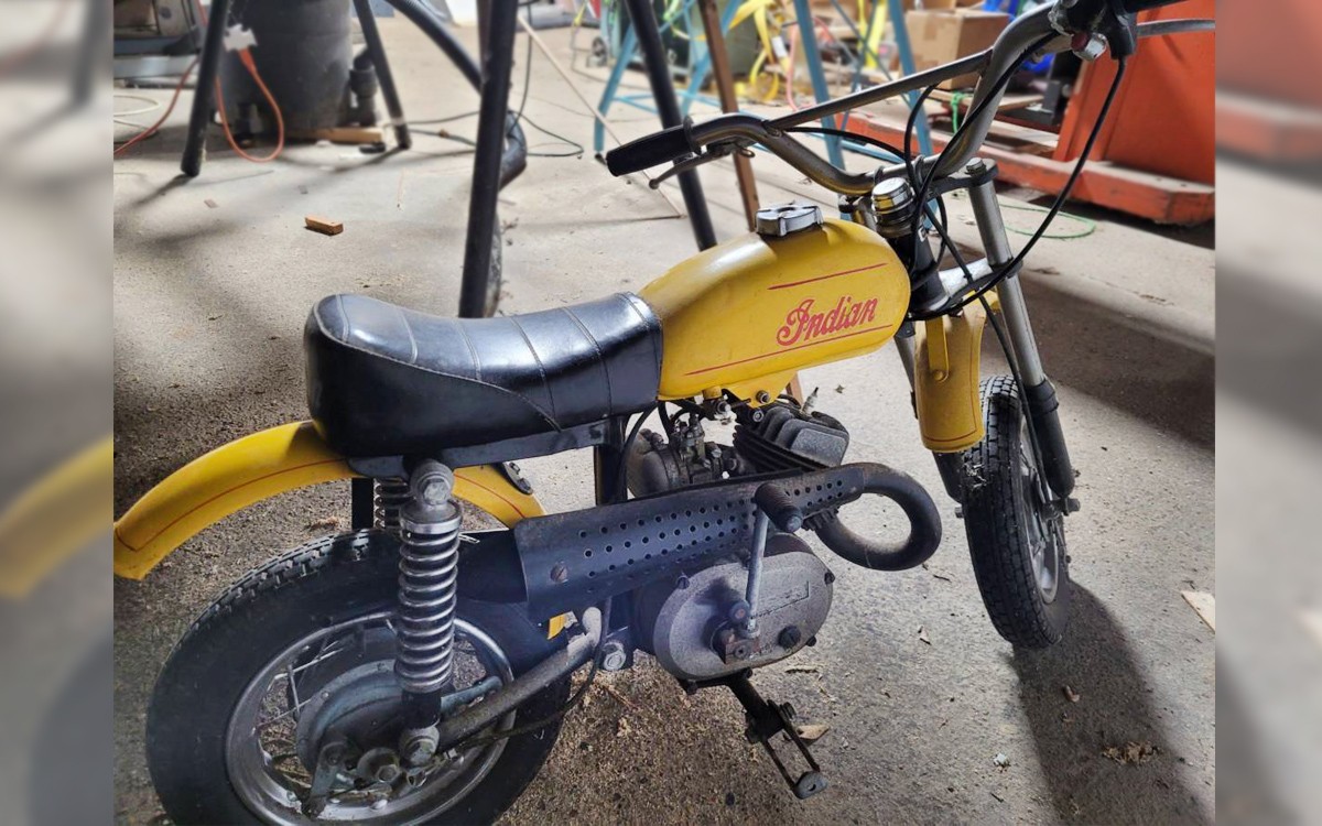These 57-pound bikes were made for kids learning to ride and were governed to 10-12 mph; not a bad idea for most adults on the #$%! freeways today, now that I think about it. They were powered by a 48-cc two-stroke single with 1.3 horsepower, and the governor could be overridden as kids got their game on after a few months of riding. This motorcycle would have cost $249 new in 1969 and the top of the seat is a mere 18″ off the ground. A lot of my motorcycles are 49-cc and I ride them regularly, although not on the street. With kick start and a single-speed transmission, this is the perfect two-wheeler to teach young people how to ride. If you can justify the seller’s asking price, that is. It’s probably worth it for such an incredible time capsule and I don’t mean to give anyone else advice on pricing a vehicle as I’ve lost tens of thousands in selling my own over the last few years. Have any of you heard of this tiny Indian motorcycle?