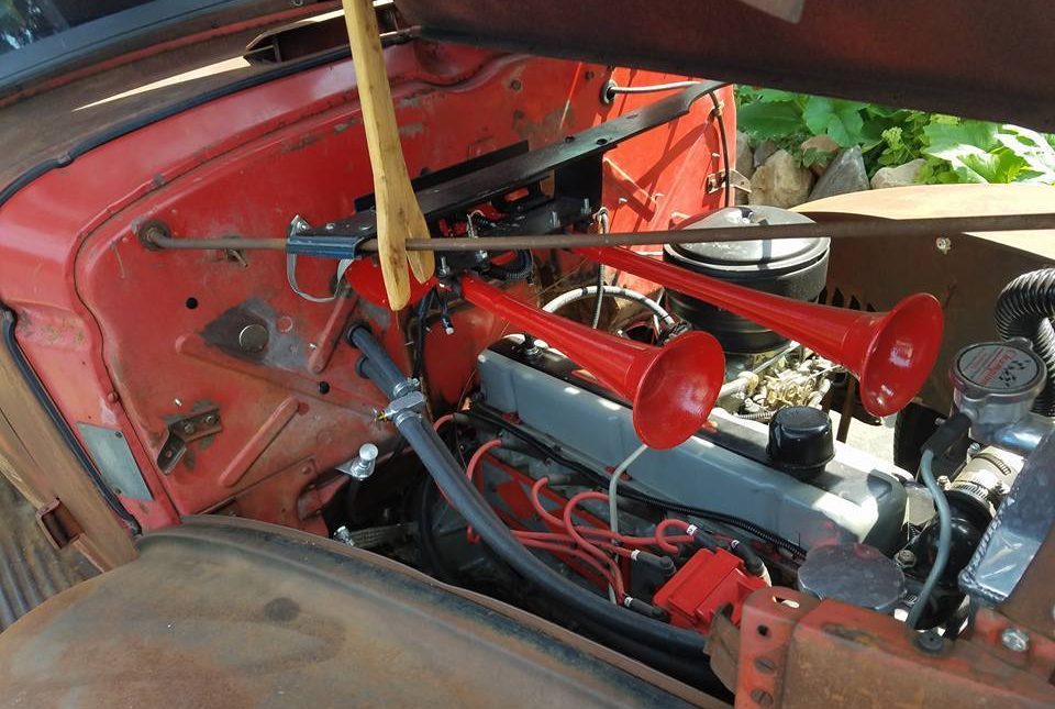 The re-built windshield crank provides natural air-conditioning. I travelled all over Pennsylvania in my bench-seat F250 and often used a boot as a cup holder, but this ’46 offers the modern convenience of handy DIY cup holders. I expected to see a “Western Blanket” concealing who-only-knows-what but, instead, this seat appears to be in decent condition and ready for a road trip. The seller claims this rig will cruise at 80 with no bad habits.