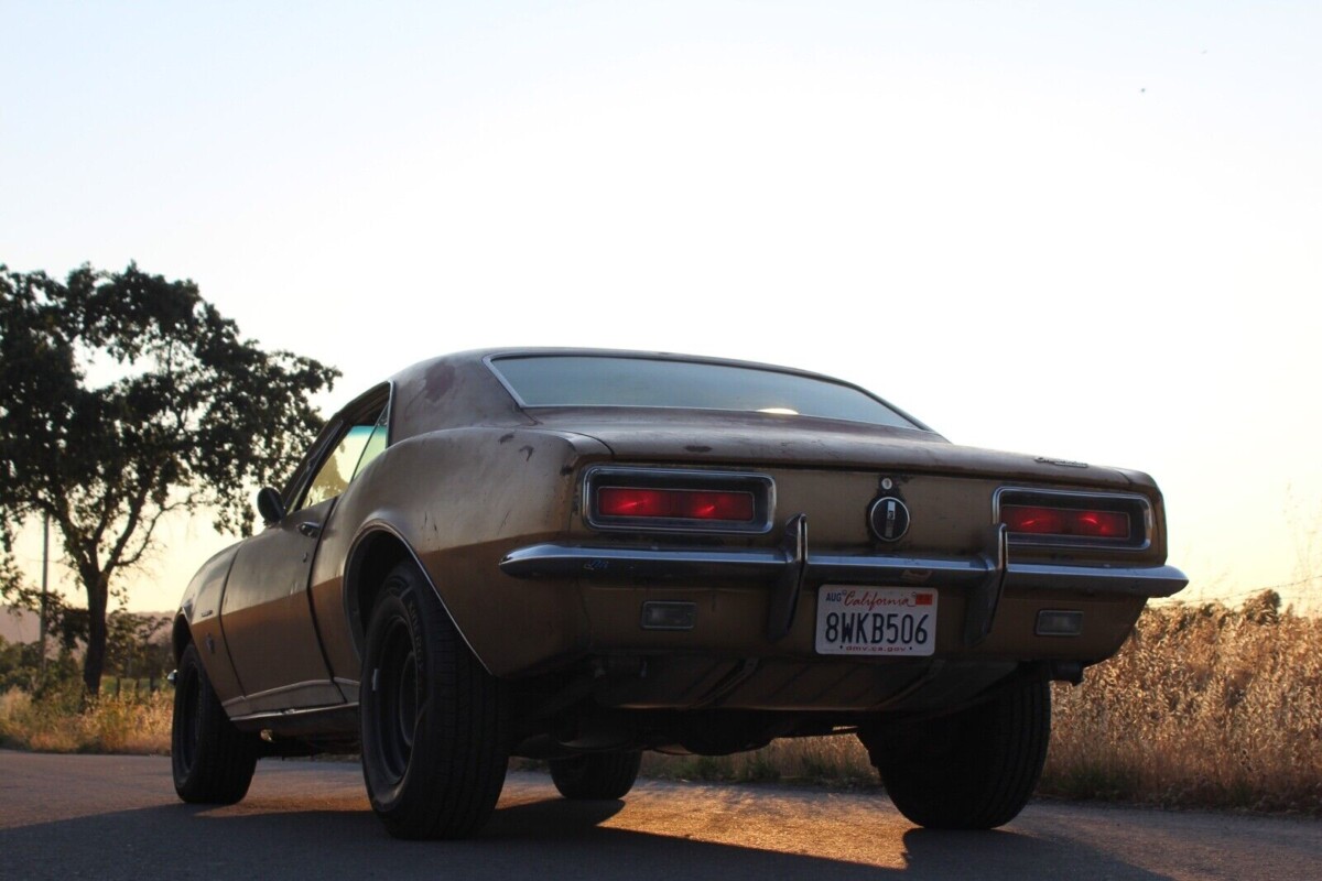 The opening picture in the ad makes things look oh-so-rosy. Twilight. Shadows. The hope that the car could be driven as is. And it probably could be, but you’ll want to book your date with the paint booth pretty quickly, most likely. Funny that the seller says the car is still wearing Granada Gold paint, with one repaint. It’s hardly like that topcoat is holding up. The Camaro is marred with surface rust and other paint rash all over the place. Underneath, there’s surface rust on various suspension members and other parts, but a generally solid-looking floor pan, which alleviates a lot of expense and trouble for whoever restores this car. There are pinholes in the trunk and a leaky rear window with rust, but that’s kind of par for the course in GM cars of this era.