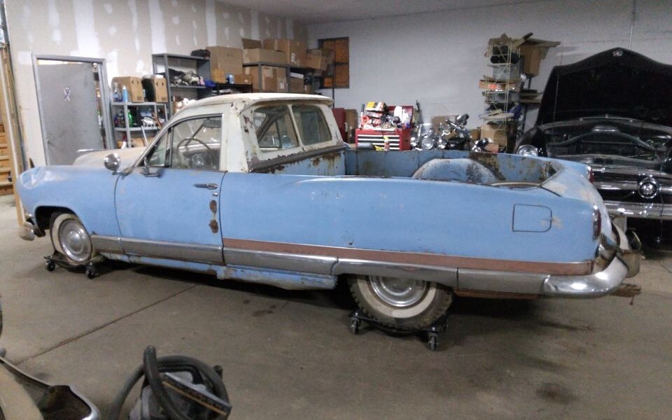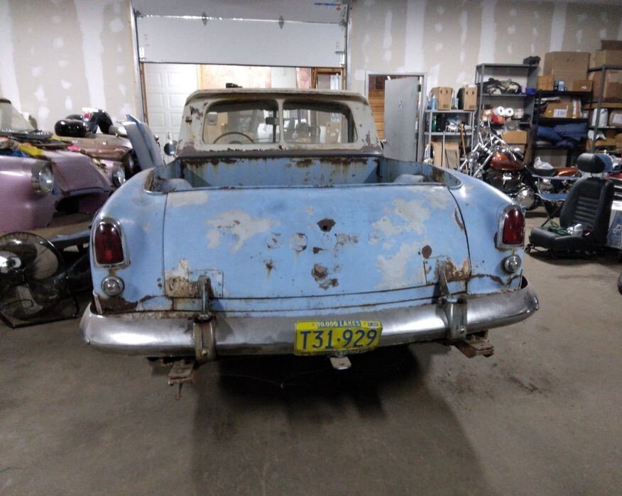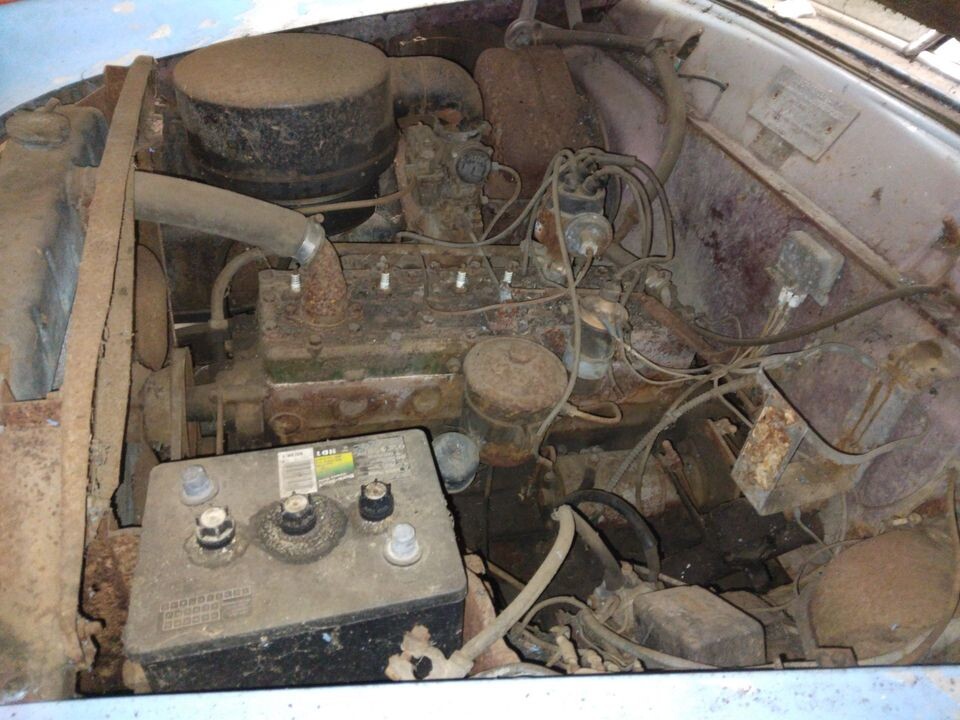 This is a non-running vehicle, once powered by Kaiser’s 226 cubic-inch “Supersonic” inline-6 with a manual transmission and factory overdrive. Aside from the “El Camino” touches, the seller says it’s a complete and original Kaiser. While the upholstery could use some attention, we’re told the dashboard sports its original leather material (they did that in those days?). The exterior paint looks to be some version of baby blue, which may date to the day the vehicle left the assembly line. Bringing this machine back to its original state isn’t feasible, so the next owner is going to want to restore it as a “Kaiser Camino.”