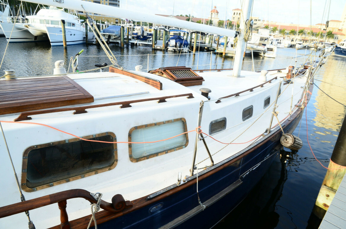 OK, so this is a live-aboard that hasn’t moved in a while. The description has absolutely no detail at all…. Here’s what it will need: Haul-out, scrape and paint ($2-4k), running gear cleaned and resealed ($500-1k), survey ($800-1k), new electronics (only the newest electronics are saltwater sealed and most older stuff only lasts a few years in salt water..$2000-5000), diesel engine and generator overhaul ($1000-4000), sails….guaranteed to be shot ($5000-15000), rigging, winches, etc, ($1000-4000), misc systems overhaul (electrical, water/holding($500-1500), misc cosmetics ($1000-3000) So this bargain of a boat is going to double in price before the first overnight cruise. The good news is that only some of this needs to be done before taking the boat out for a few hours, or before moving aboard. But I can tell you from first-hand experiance that all the brightwork on this boat (i.e. teak) is truly tedious to keep in good shape. Good luck with the sale!