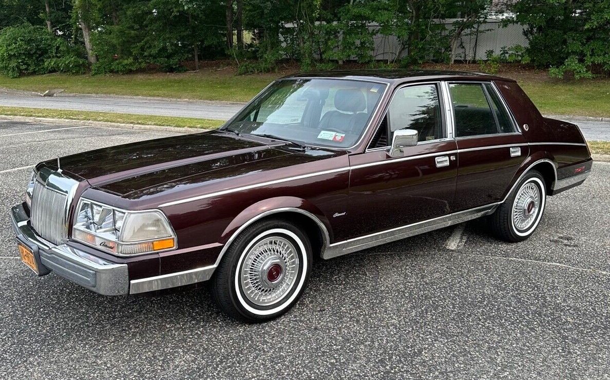 I think where things get out of kilter is in the profile proportions. The fenders and front doors work, the rear door seems a bit too narrow and the quarter panel looks like the designer ran out of modeling clay and decided to call it a day. Compounding the awkwardness is the overly short deck lid with its silly, outsized continental spare hump. That said, this Lincoln is in survivor condition and doesn’t appear to have ever experienced a NY winter. The excessive stainless trim seems garish by today’s standards but that’s the way things still rolled in the ’80s and it all presents well. As for the Cabernet finish, the seller suggests, “The paint finish is very good to excellent, with a few minor scratches…“. And of course, it wouldn’t be ’80s domestic luxury without the inclusion of sparkly wire wheel covers.
