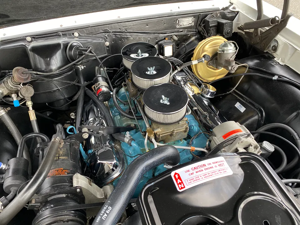 The odometer is said to read 87,850 miles and the GTO hails from North Carolina originally. The black interior looks great against the white exterior paint. The factory color should be Code C Cameo Ivory. This car looks more like a 1970 Polar White. The car has the correct wood steering wheel. The seller states that the car has new brakes and new shocks. You can barely see the push button radio in the dash. The car’s chrome and glass appear to be in excellent condition.