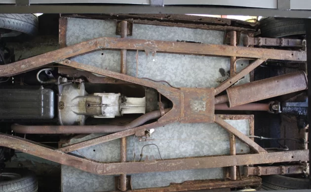 It does have some of the standard Triumph rust (pun intended). The floors have been replaced by some flat galvanized steel, which you might as well do right if you’re restoring the car. The rockers also don’t look great, but once again, those parts are readily available, and you don’t take on a project like this if you don’t know how to weld.