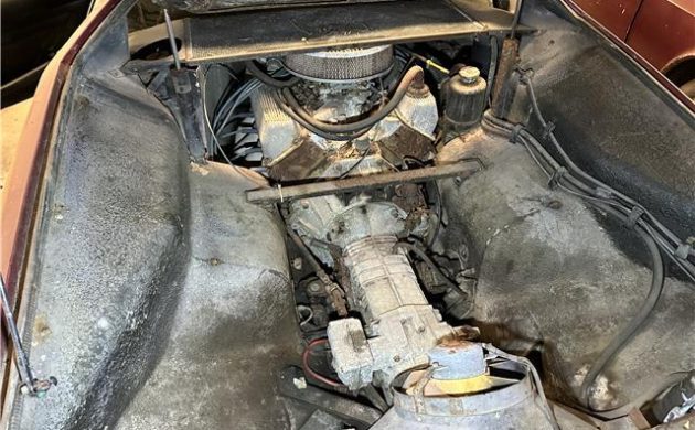 But this one is not going anywhere without some effort. Look at the front end. The hood (and trunk for that matter) are literally rusted off this car, something I’ve never seen before. The seller blames poor cover during storage, but who keeps a car like this outside for decades? Did the owner not have any idea of the value of it? Or to say it the opposite way, did that former steward of the car not realize that damage to this unit was going to cost a lot more than damage to, say, a 1966 Mustang? Anyway, you’ll be on the hook to fix the rust and to give the rest of the sheet metal, bottom side as well as top, lots of love, and to do pretty much everything else, including remaking the interior and mechanicals, for which no claims of fitness at all are made. Good thing the engine is a common Ford 351-CID.