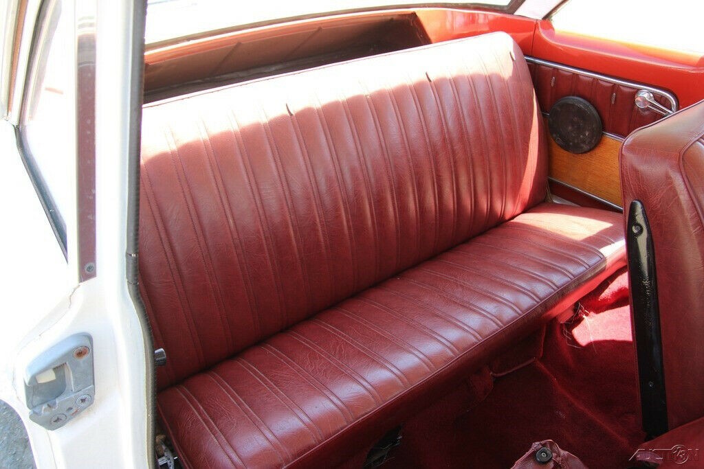 my Mother had this exact model–different upholstery as I remember. It was a fun car to drive-having said that , their was no a/c of course and the heater was almost an after thought–very poor. The coolest part of this car is the trunk. At picnics, we would fill the trunk with ice and sodas and beer–it had a drain plug in the bottom which we would pull to drain. I also bathed our dog in there so he wouldn’t jump out. It was a very easy car to maintain.