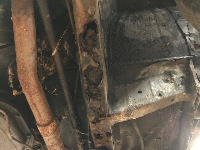 The sheet metal on the car doesn’t look bad and most of the surface rust may be on chrome pieces. The paint is pretty faded, especially on the roof. However, the undercarriage is where most of the trouble lies, with rust holes in important things like the frame rails. Likely for this reason, the inspection report says the condition of the body is poor. So, this car has deteriorated from the inside out, rather than the typical other way around. Wisconsin and New York (the prior title state) both have harsh winters that can do that to a car.