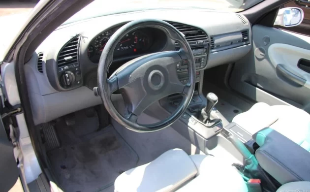 The E36 chassis cars were not known for their interior build quality or the durability of the materials; still, this one is holding together better than expected for a driver-quality example with 145K miles on the clock. I can see the instrument cluster shows the typical airbag warning light, which is usually tied to the seat belt receptacles. Not a big deal either way, and if your state doesn’t have a stringent inspection process, you can ignore it indefinitely. This is a sport package car, which you can tell by the large front air dam in the bumper, and that means it got the desirable “Vader” sport bucket seats. I noticed they were also manually adjusted, which means no finicky power seat gears to fix.