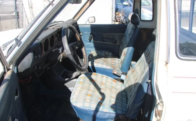 The interior features a stylish upholstery pattern, and it remains in surprisingly decent shape. The odometer shows just under 91,000 miles, which is hard to verify on these older vehicles, but the upholstery condition gives me some hope it might be accurate. The dashboard, of course, has some cracks to deal with. The truck does not run at the moment, which is a shame considering it likely won’t take much to get it to fire, but this donation lot seller isn’t going to do the work to make it operational. The automatic transmission is a bummer, but it also likely means the truck was babied.