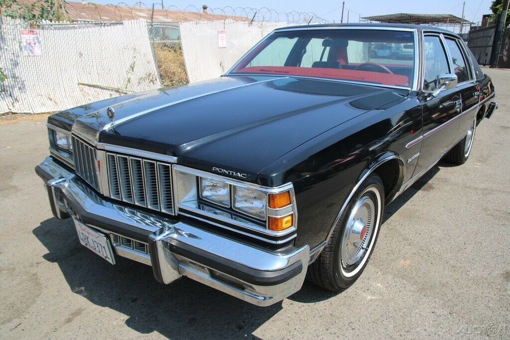What an absolutely gorgeous car in a gorgeous color combination! When the B bodies were restyled in 1977, the Pontiacs came out the best out of all 4 of them. What I like about this is FULL INSTRUMENTATION. A lot of times GM did not do that on their cars. Pontiac was the most likely division to offer that. Temperature, oil, volts, and even a vacuum gauge prominently in the center! How cool is that?? The red interior is a nice shade and is in great shape! The only thing that would have made this car nicer is if it were a Bonneville Brougham with the velour interior. You could still get a 350 in 1979 – I don’t think you could in 1980 or 1981 – the 301 would have been the biggest engine. Fender skirts not installed – they look good on these cars. Someone’s going to get a beautiful car!! Wish it was going to be me, but it’s not…