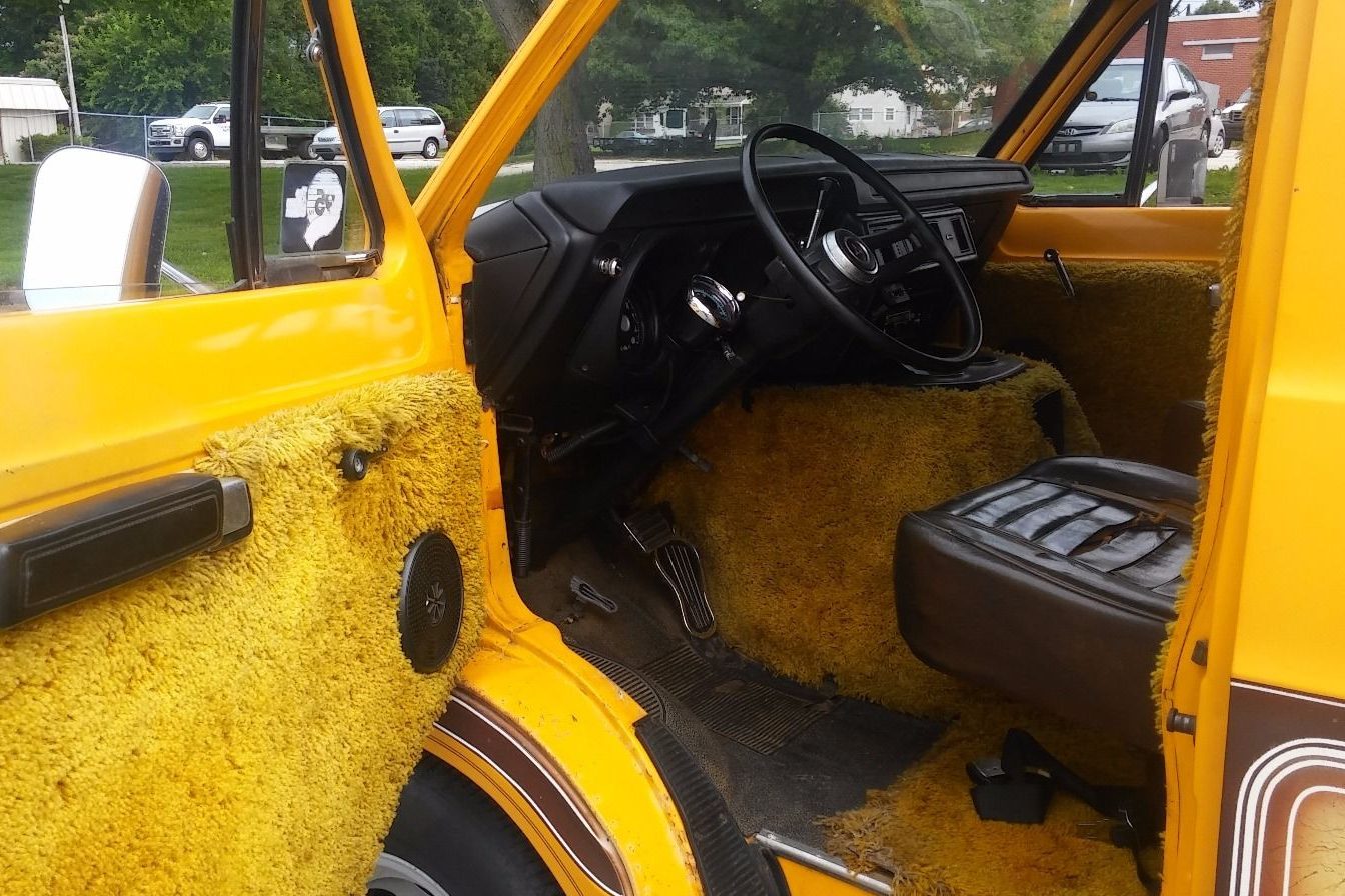 Cool van, but that nasty shag carpet would be the first to go. My friend had a black 75 or so van like this, great party van back in the day…..