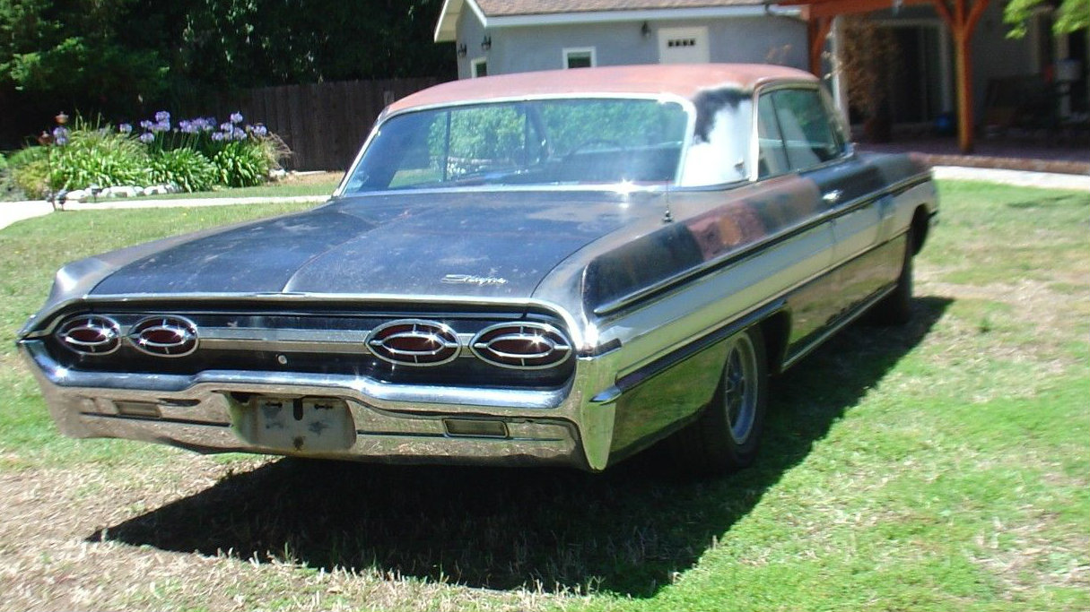 61 to 64 were my favorite Oldsmobiles. I too love this car, and it is just the way I’d want my next project. I would leave the interior alone for now, but definitely give it a new paint job and detail that engine. Repairing the A/C would be a must!