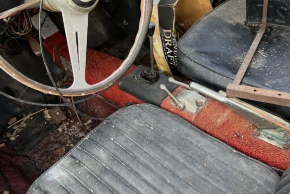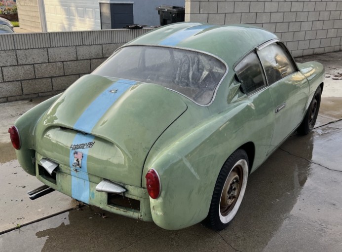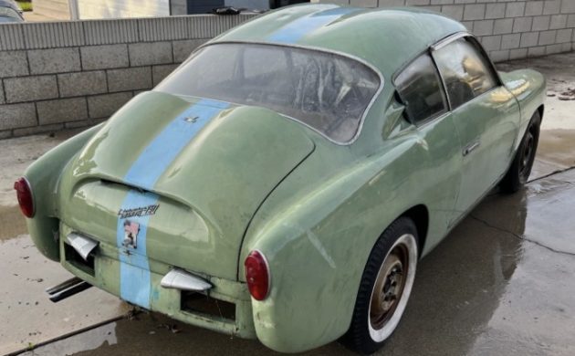 I’ve owned dozens of various types pf alloy bodied Abarths over the years including a number of Double Bubbles. This one is pretty crusty and looks like a few that I bought “back in the day” (late ’80’s/early ’90’s) for $500. Mine were usually found in SoCal backyards covered with weathered blue plastic tarps. Occasionally I would venture out of state if the model was rare enough to make it worthwhile. I once discovered Al Cosentino’s rare Monomille ducktail in an apple barn in uptstate NY, a Record Monza Zagato and genuine 1000 TC berlina in Columbus Ohio (still have the TC) and a prototype 750 GT Spider Zagato in Texas. When this Double Bubble popped up on ebay I reached out to the seller to get more information and photos of underside rust. The seller has still not provided either of these. I was driving through LA last week and requested to view the car in person and he declined to show it. Some sellers don’t really make the process very transparent for buyers. Is he hiding something? No way to know, but there may be some major surprises to be found after purchase – it could be a Flintstone car!