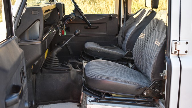 The lack of carpet or mats means that life inside the Land Rover is likely to be pretty noisy. It also means that removing the sort of mud and gunk that can find its way into a vehicle like this would be pretty easy to clean up. Personally, I’d probably look at grabbing a set of decent rubber floor mats, because they would lower the noise levels, but still mean that cleaning was pretty easy. Cloth upholstery gives a touch of luxury when compared to vinyl, but the driver’s seat is certainly demonstrating all the signs of wear and tear. The upholstery itself is quite dirty, while the padding has developed a noticeable sag to it. The rest of the interior trim looks like it could do with a really good clean to return it to its best. One really neat trick that I’ve seen with these is to buy aftermarket slipcovers for the seats made from the same material that wet-suits are made from. These protect the seats nicely but are very easy to clean when things have gotten muddy. The Double Cab is also a bonus because that means that the Defender is a true 5-seater, which means that the whole gang can go on your next adventure with you.
