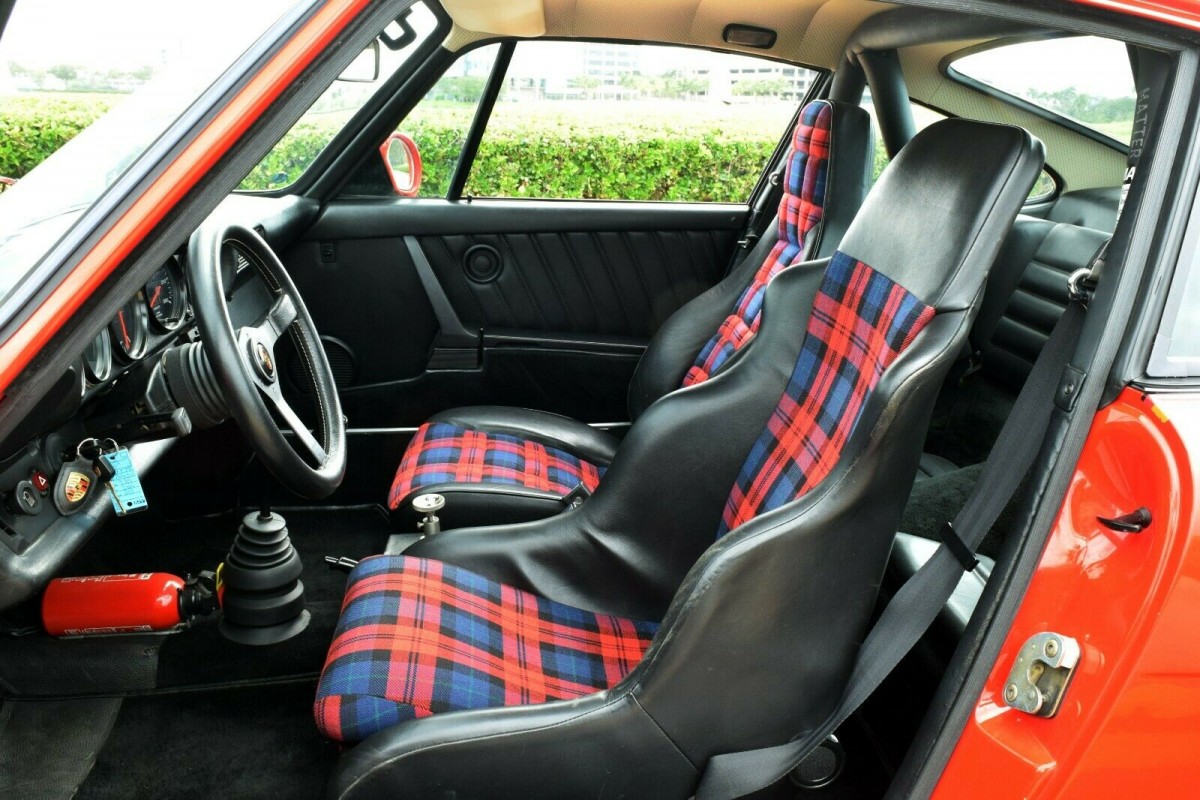 The interior was also upgraded with the sort of period-correct parts that many German car enthusiasts salivate over today. The deeply bolstered Recaro (or possibly Scheel) seats feature a custom tartan cloth insert, and still appear to be in mint condition today. A three-spoke steering wheel and fire extinguisher have also been added, and the transmission was upgraded to a dogleg 5-speed and limited slip differential. The interior is extremely clean, and with only 33,000 original miles, it’s clear that this 935 was preserved for special drives and fair-weather-only conditions – as it should be.