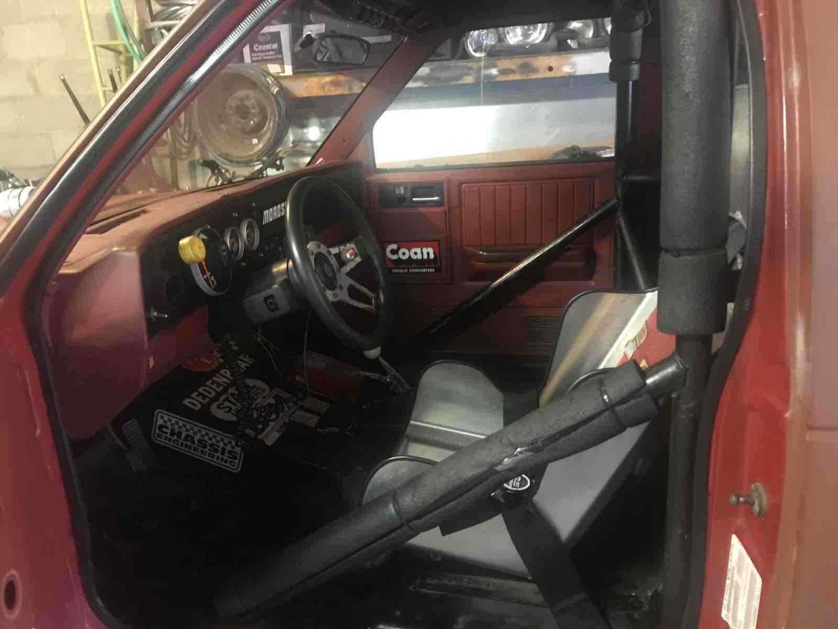 The interior certainly has the hallmarks of being set up for drag racing, with a full cage and solitary racing bucket seat. The interior hasn’t been completely torn out like some dragster are, so you still have the door panels and factory dash as opposed to bare aluminum panels and a custom dash with only the most essential gauges. In the world of drag racing, this truck has the appearance of being a safe, properly set-up drag vehicle, but certainly not a stripped-down creation whose sole purpose in life is to blast down a quarter-mile. This S-10 looks like it could actually be used outside of that environment if one so chooses.