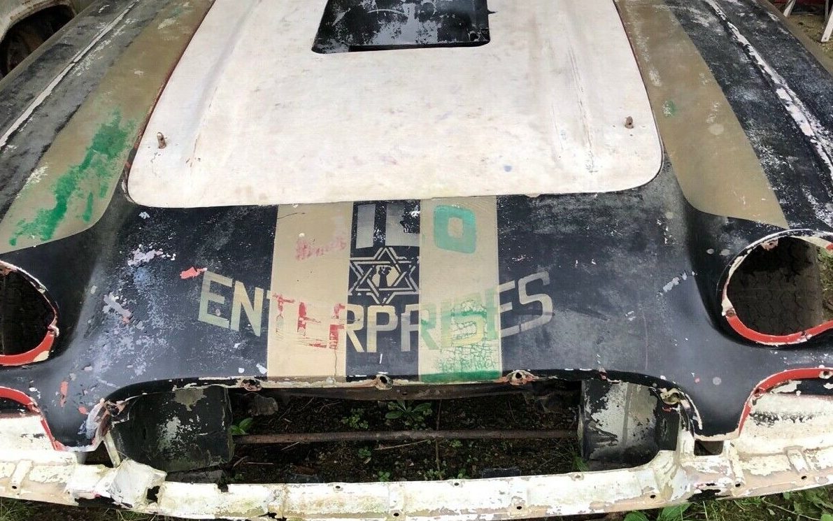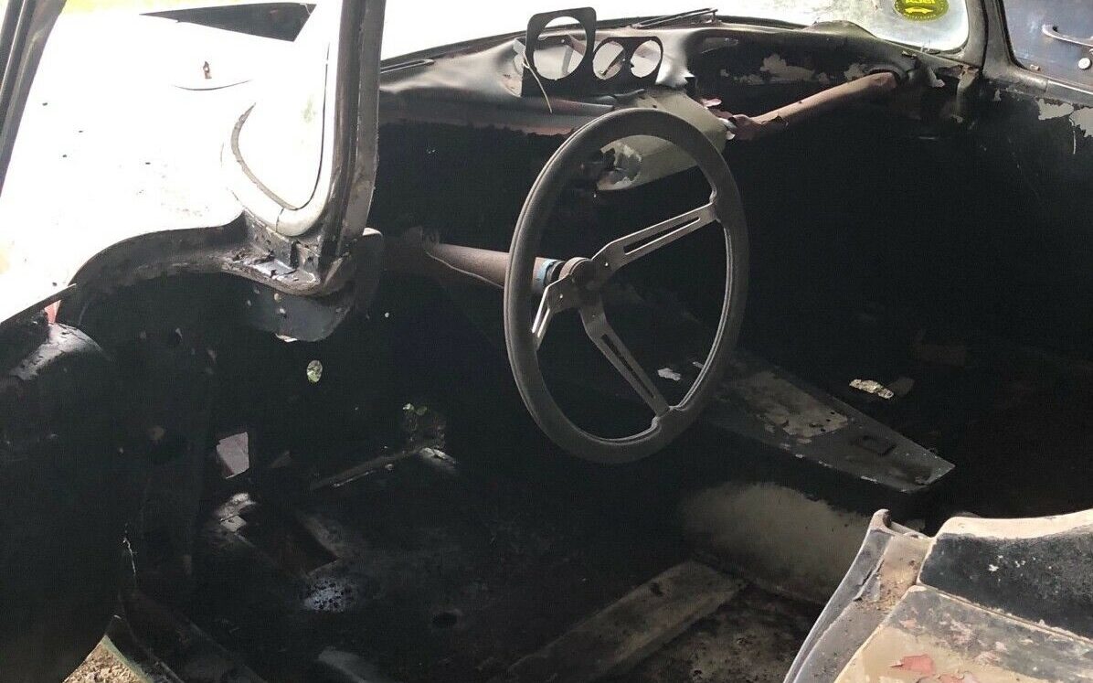 The seller describes this car as follows: “Nose is original very nice, (the) body is modified for drag racing such as wheel wells radiused and floor and firewall are cut out; Frame was modified for drag racing -has some rust; doors, trunks all hinged operate like they should; deck lid modified with roll bar also hinged; windshield complete“. I’m not sure that I could concur on the “nice” condition of the original nose.