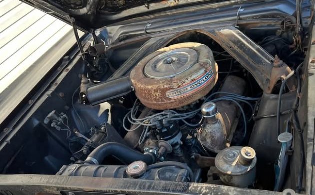 When I see the term K-Code employed, I usually think of a 271 gross HP, 289 CI V8 engine. In this case, however, K-code was assigned to the Comet’s “Super Cyclone” engine, a 210 gross HP 289 CI powerplant (note the Super Cyclone decal on the air cleaner assembly). Research indicates that the K-code designation migrated to that hot 271 HP version in ’65. A Merc-O-Matic three-speed automatic transmission backs up the Super Cyclone, but there’s no mention made of running or driving attributes.