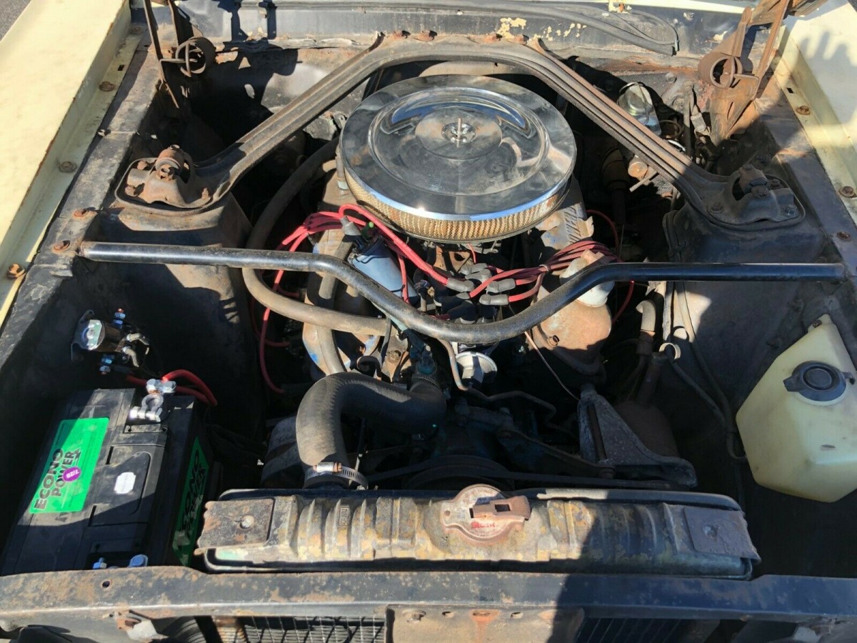 It’s probably no surprise to learn that this Meadowlark Yellow Mustang has some rust issues that will need to be addressed before a fresh coat of paint is applied. Externally, we’re talking about most of the usual areas, including the lower front fenders, the lower rear quarter panels, and the bottom corners of the doors. There are also some spots on the trunk lid, but itis hard to tell whether these are repairable. The vehicle’s underside is described as being pretty solid, although I can see some rust in the trunk pan. If the floors, frame rails, and torque box regions are clean, this is a car that shows potential. Both of the bumpers have corrosion, although the remaining trim and glass look quite good. The Mustang rolls on a set of GT wheels, but the badges are missing from two center caps, and the wheels themselves need a thorough clean.