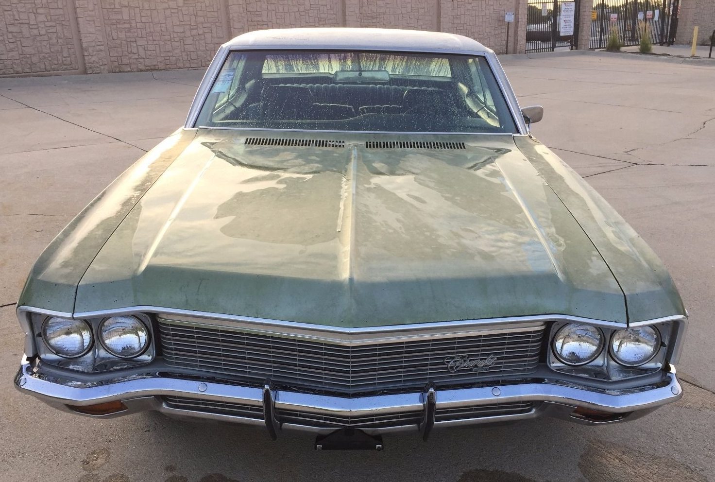 While Green on Green may not be your thing, the interior is more than serviceable. Even with a few tears those seats could likely carry you coast to coast in comfort. Dual pine tree air fresheners – perfect for covering up the olfactory sins of your past. The tilt wheel is another nice touch. Though the back seat is not shown, we might assume that the population of Nebraska is one or two greater because of it. These days you’re more likely to see a perfectly restored 1970 Impala than a driver. Is this car destined for a bunch of Year-One boxes and the Saturday car show circuit, or could it give another 120,000 miles as a purposeful used car?