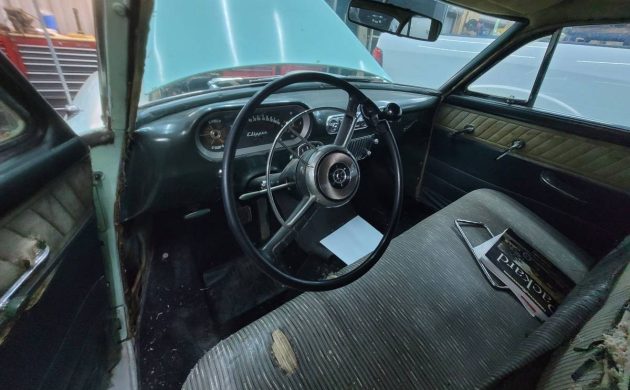 The seller tells us that he purchased this car as a project, but actually, it looks pretty good as it sits. The body is described as being in great shape with just some surface rust. The finish is reasonable, the chrome bits are strong, and the stainless trim is all still in place and shines as it should. To my eyes, the styling here isn’t much changed from the 200 model that was offered in ’52. Of course, I imagine Packard was capital-constrained, and nothing evolutionary was going to occur in the styling department.