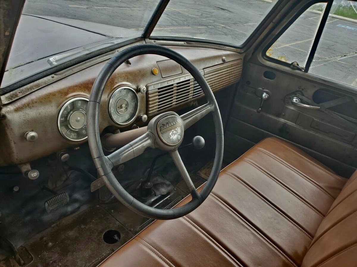 I’m sure that’s a ’52 model; the ’53 had 3100 on the hood sides. But I also say that Chevy was pushing trucks out the door so fast that things got ahead of them. It could be a late ’52 which might have been sold as a ’53. It doesn’t matter all that much because there was little difference otherwise. The engine is the correct babbitt-pounder but I’m sure that it’s running a 4-speed manual; the 3-speed was column shift.