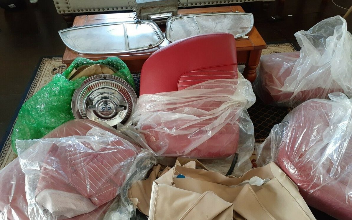 The seller refers to this car as a matching number, unrestored original. Obviously, the wheel covers are not installed but the seller states that he has them. He claims that the frame is rot-free and from what can be seen, the body looks like it is in sound shape. The trim is all in place but the Polo White finish is degraded and flaking here and there. There is a tan, folding soft top in place and the seller advises that he has a removable hardtop that is available but is not included in the price of the car. There are no included images and he doesn’t know the manufacturer.