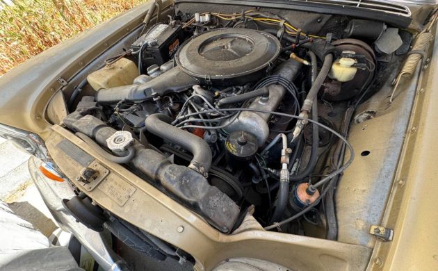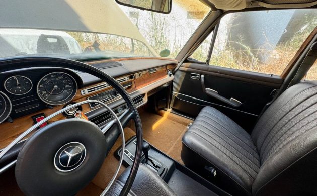 The interior, too, made for a trailblazing car, even with relatively simple design. But that was the beauty of it: a luxury car could be understated yet incredibly advanced. The wood trim, handsome gauges, a high-end stereo, and a floor shifter that would set the design of Mercedes transmission consoles for decades to come all made for an unmistakable cabin. You knew you were in a Mercedes product when you sat it one. The seller’s car looks quite tidy inside, with an attractive contrast of black and tan. The seller notes that it does suffer from typical Mercedes trouble spots with a cracked dash and wood inserts that need restoring.