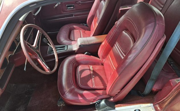 The owner confirms that the Firebird is an all-numbers-matching example, but doesn’t specify which engine is under the hood. Fortunately, he provided a copy of the window sticker, and we can conclude from the letter M in the VIN that this one’s equipped with a 350 2-barrel V8. The car is reported to run and drive very well, with the fuel system recently serviced, including a carburetor rebuild. This one’s also got the optional TH350 automatic transmission, but no word on whether or not it’s been gone through.