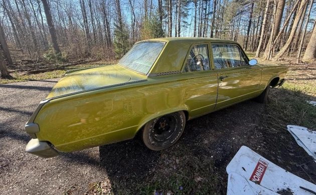 We’re told this Valiant has 93,000 miles, which we assume also applies to the “powerful” V8 engine. The seller describes this vehicle as the class of the field, but the photographs suggest something a little less inspiring. Better photos might help. The automatic transmission has had the shifter relocated to the tunnel on the floor. And the Mopar has a “rear-wheel drive system.”