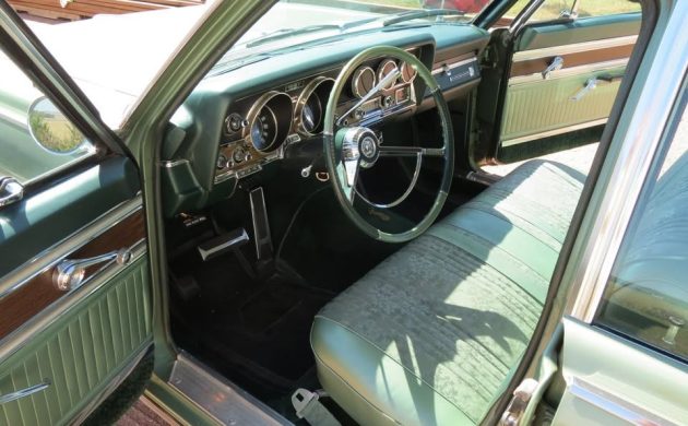 At 73,000 miles, this ’66 990 (the top Ambassador model) wears its original paint and interior. The latter seems to be a bit faded, but no sheet metal damage has ever afflicted the AMC (per the seller). What we see of the interior appears to be nice for a car that is nearly 60 years old. The vintage car has a set of aftermarket wheels onboard, but the factory rims and wheel covers are in the trunk.