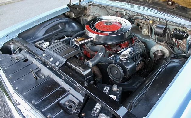 The Starfire itself was the sporty “console and buckets” full-size Oldsmobile. Introduced as a convertible in 1961, the line expanded to include a hardtop in 1962, and sales were brisk: 41,988 (hardtops and convertibles combined). The standard engine was Oldsmobile’s best, a 394-cubic-inch Rocket V8 packing 345 horsepower. All Oldsmobiles from 1961 to 1964 used the Roto Hydra-matic transmission (also known as the “Slim Jim”), and they didn’t (and don’t) have the best reputation; however, the seller says that this example has “no performance or operational issues.” It does have power steering and power brakes, and the following work has recently been completed: