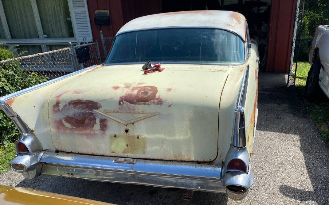 The seller of this ’57 states, “Please be willing to come take a look in person so I’m not answering a lot of questions. No trades!” Great, just what you need with a listing that essentially has no detail other than that comment. So, with that, here’s what can be spied, the body looks fair, surface rust is present, with what looks like rust-through in the fender legs. The panel alignment is not indicative of crash damage, glass looks good as do the bumpers. The extensive Bel Air stainless-steel trim, however, is nowhere to be found and you’ll probably have to go to Kansas City to find out what happened to it.