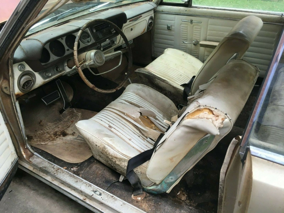 The car’s original color appears to be Capri Gold Metallic which has developed the requisite patina over the years. The weather has been harsh to the exterior and interior and there’s going to be some rust to deal with. The car apparently had a vinyl top at some point and either rust or dirt smudges can be found on the driver’s side by the rear glass.