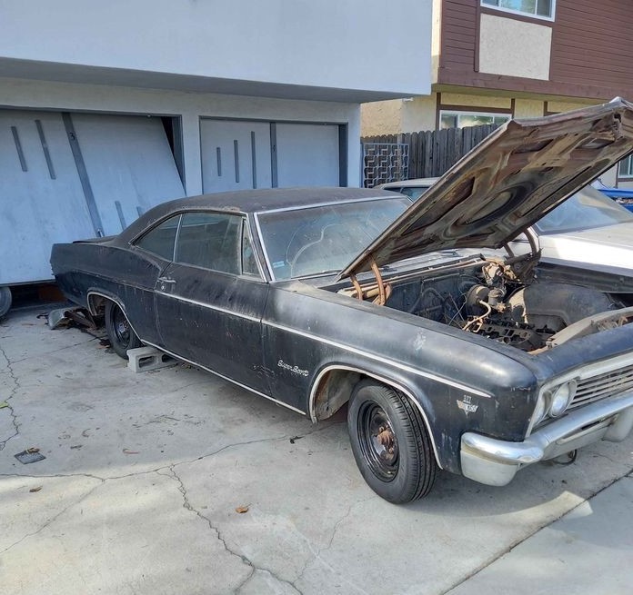 This 66 is way too rough to justify this asking price. Engine no matter what it is is partially disassembled. If its an SS it should be a 327. Interior is gone. Who knows last time the engine even turned over. The 64 Impala SS i got for $6000 at least urned over and ran after i added another carb. This one is too far gone for the asking price. Maybe he just doesnt really want to sell it.