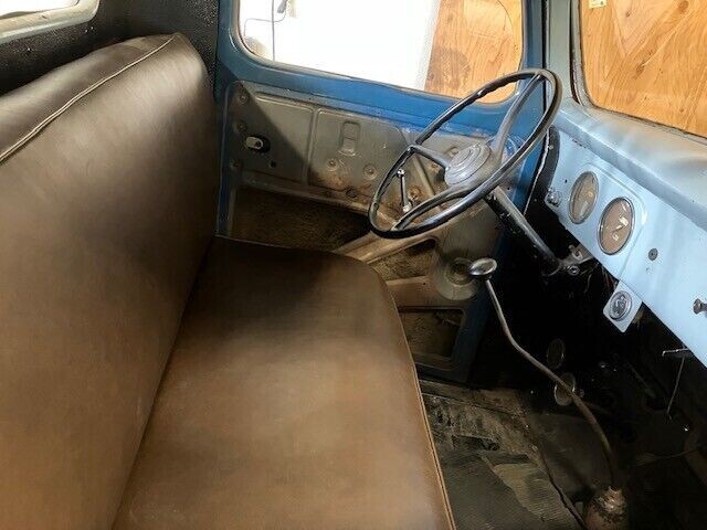 The Pickup’s interior is a mixed bag, with the painted surfaces wearing several shades of Blue. The Brown seatcover looks relatively new and has no signs of wear. The door trims are included, but they require refinishing. One of the attractions of these classics is that interior restorations are a piece of cake. An enthusiast with patience and moderate painting skills could dismantle it, refinish the painted surfaces, and bolt everything back together. Doing so and adding a vinyl floor mat would make this interior pop.