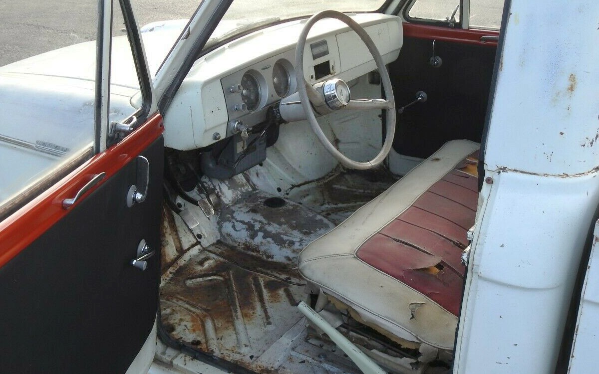 The interior houses a Datsun 520 seat which is a couple of inches wider than a 320 seat so the seller modified a few things to get it to fit. It’s basically sitting in there due to 9.8 M/S2 (gravity) and there is a lot of work to do inside other than the seat. But, this is a running and driving truck with a 4-speed manual column shifter. It’s a truck that you can use as you bring it back to maybe a bit more closely as to how it might have been from the factory. Again, if that’s not your bag, that’s cool. We can all do what we want to do with our vehicles.