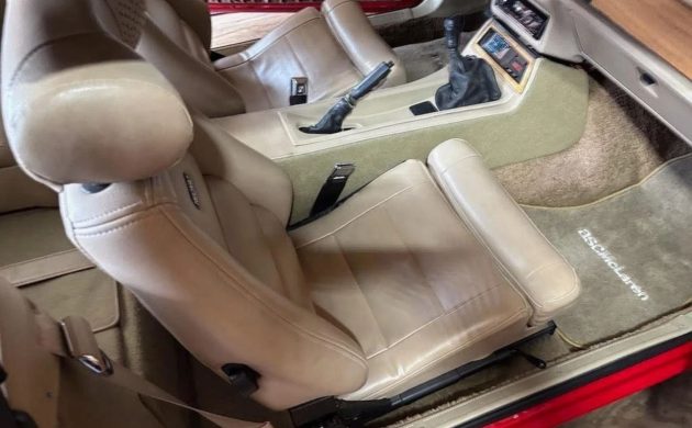Inside, the car is equipped with Recaro bucket seats that include both heating and cooling functions, along with headrest-mounted speakers. Wood-grain interior accents and a rear seat delete are also noted, adding to the car’s distinct personality compared to more standard offerings of the time.