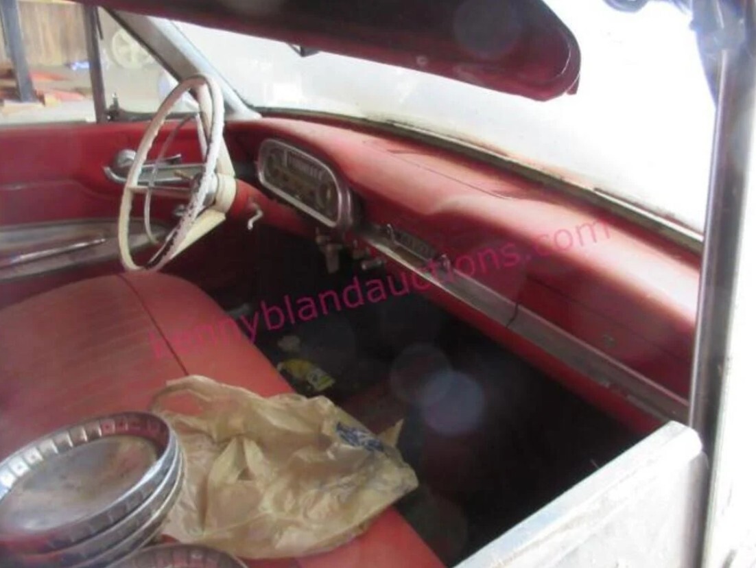 Just a fleeting thought. Car is in Indiana, will need floor pans at a minimum. Rust bubbling in doors and rear wheel openings, also in front fender wells. Hard to tell on the inner rockers, but being a unibody design, expect it. Bidding up to $1625.00 with 17 days left to bid. I would guess it will end up with a V-8 and a floor shift at a minimum.