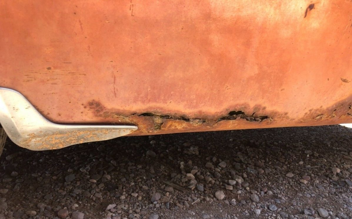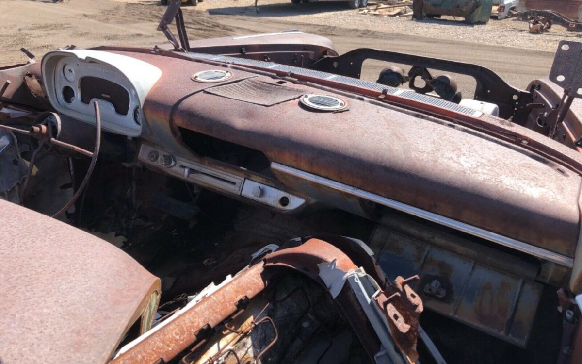 It’s hard to make a value judgment around the interior, especially when there is a hood, or whatever, blocking one’s purview. In the captured image above, it appears as if the windshield frame is missing, though it is clearly visible in other images. There are some remnants of seats visible but they look like rusty frames at best. This car has clearly been basking in the outdoor Arizona heat for some extended time, and even though this is dry Arizona, I’d still want a peek at the floors and structure in their entirely.
