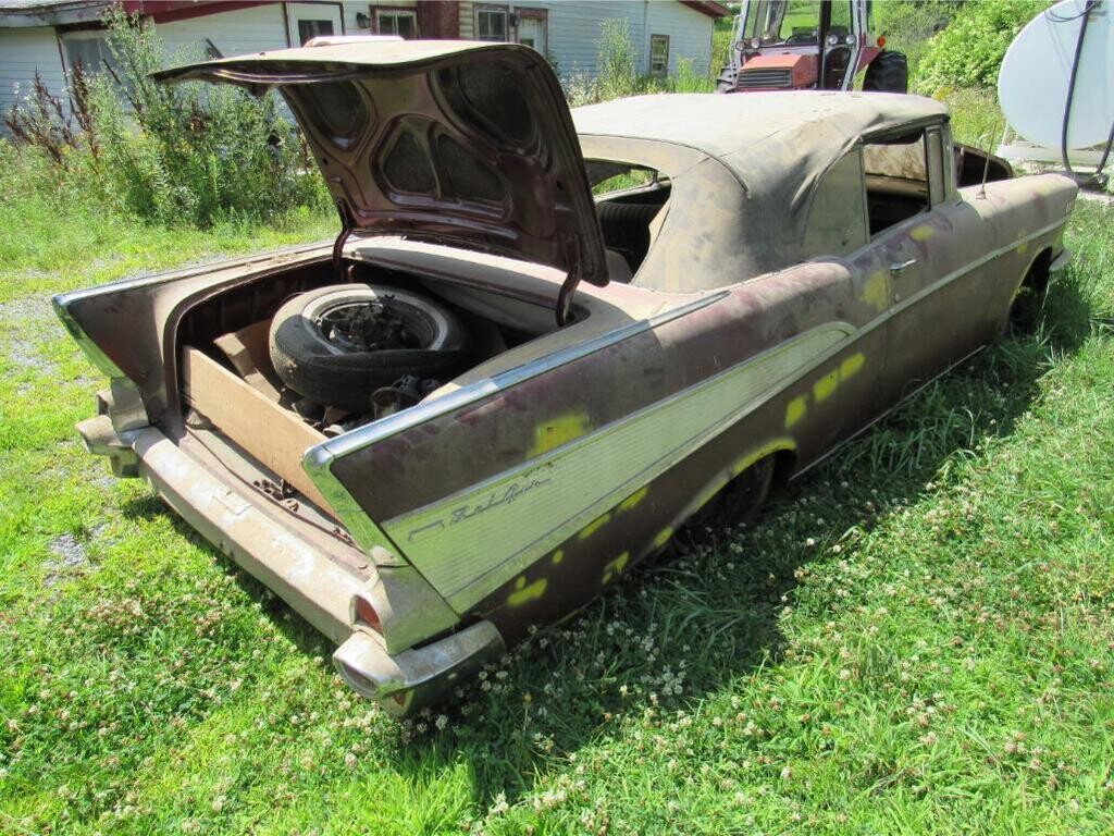 It is pretty amazing seeing this in current condition. My guess is the project timed out and the seller simply expired before getting to it. It’s no secret that the 1957 ragtop is a blue chip collector car. One needs not to be an enthusiast to know. The seller hung onto it a little too long. I think with a bill of sale and misc parts that do not belong thrown in a hard pass as the values for these are on a downward trend.The cost to restore you could easily get one you could drive now and enjoy for less money.