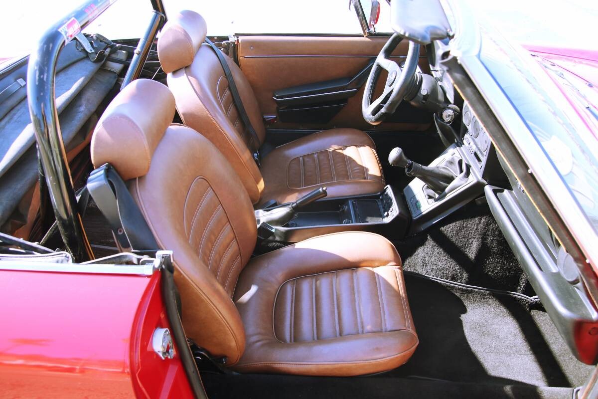 This Alfa Romeo Spider Graduate represents the Series 3 design and was sold in North America. The roadster has a clean interior with well appointed tan seats separated by a 5 speed manual shifter. The Alfa Romeo has new carpet, a new steering wheel and recently recovered convertible top. The seller states that the clear coat on the exterior panels is fading even though the pictures indicate a shiny red paint job. The Graduate edition acknowledged the cars appearance in the 1967 movie called The Graduate starring Dustin Hoffman. It was marketed as a less expensive edition of the car from 1985 to 1990.