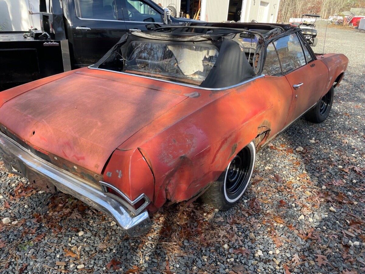 As was the case with the rest of General Motors’ intermediates, the Chevy Chevelle got a redesign in 1968 (its first since 1966-67 was just a styling update). The division would go on to sell more than 464,000 Chevelles and El Caminos in ’68, yet only 1.5% of them were Malibu convertibles with a V8 (fewer than 7,000 copies). This one is a roller in rough condition and missing its powertrain, which was once led by a 307 cubic inch V8 (per the fender script). Located outdoors in Manahawkin, New Jersey, this project is available here on eBay. The reserve has yet to be met at the $3,500 bid mark.
